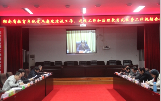 3月14日上午9点,2014年湖南省教育系统党风廉政建设工作、巡视工作和治理教育乱收费工作视频会议召开。会议由省教育厅党组副书记、副厅长肖国安主持会议。我校西苑二楼视频会议室为衡阳分会场之一,我校党政领导班子成员、各职能部门主要负责人、各学院党政主要负责人以及衡阳地区部分高校的党政主要领导80余人收看了视频会议。