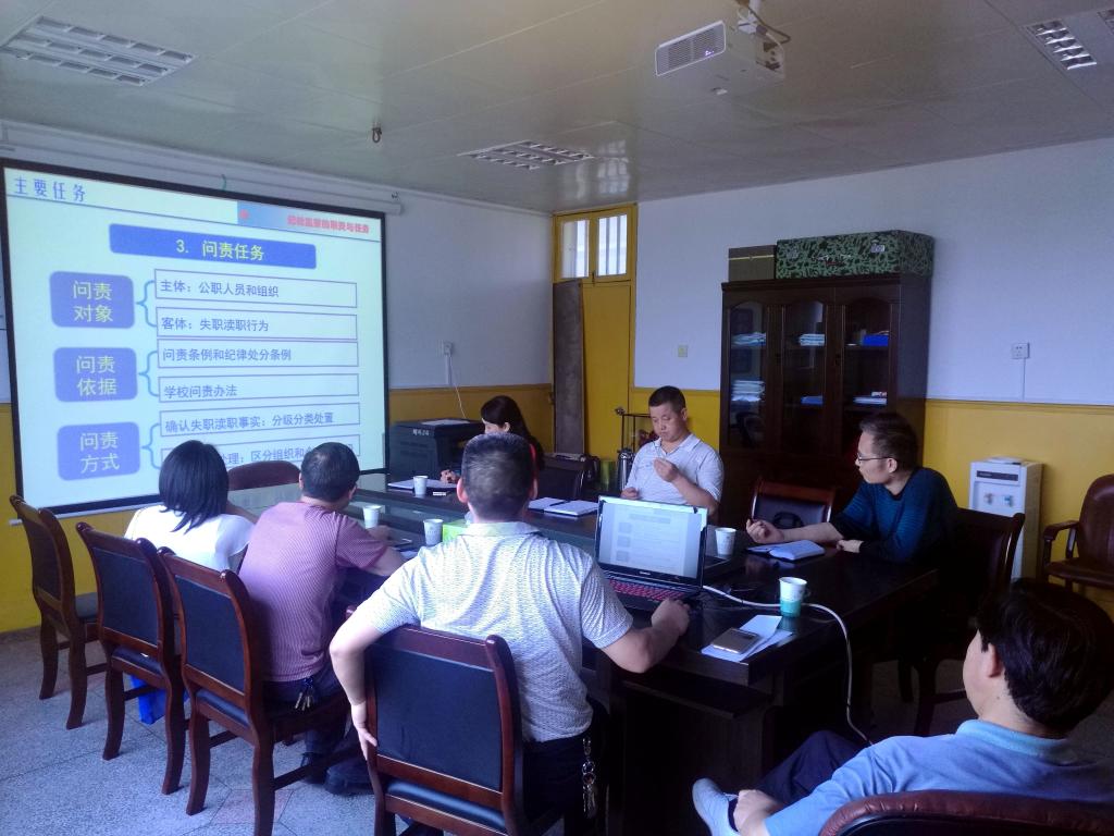 为学习贯彻全省纪检监察系统警示教育电视电话会议精神,不断加强学校纪检监察干部队伍建设,2017年5月22日下午,beats365唯一官方网站组织全体纪检监察专职干部开展了教育培训暨警示教育活动,全体纪检监察专干参加了会议,校纪委书记熊哲琰出席会议并讲话。