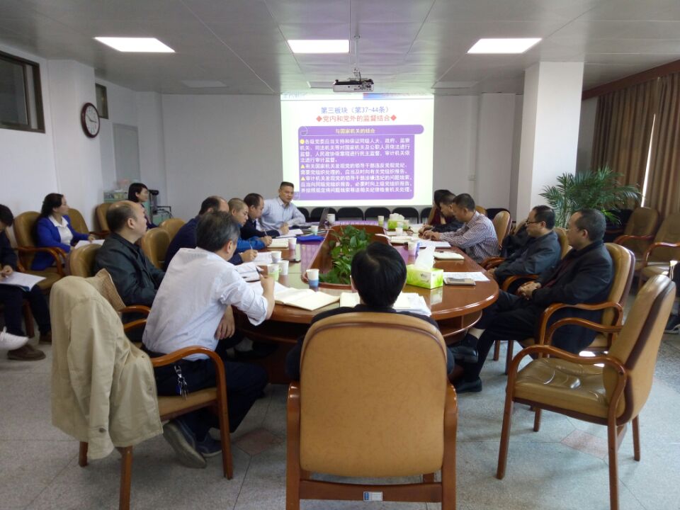 曾建新对《中国共产党党内监督条例(试行)》等党内制度文件进行了深入解读。解读从党内监督任务、监督内容、监督制度、监督责任等《条例》重点内容进行了阐述和讲解,并结合实际工作情况进行了深入分析。他指出,《条例》是新形势下加强党内监督的顶层设计,是规范当前和今后一个时期党内监督的基本法规,大家不仅要学习原文,还要带着问题学,真正做到入脑入心,内化于行。他希望全体纪检监察干部要把学习贯彻党的十九大精神和《条例》作为一项长期政治任务抓紧抓实,始终在思想上政治上行动上同以习近平同志为核心的党中央保持高度一致;要严明党纪,严于律已,要以上率下,推动形成主动接受监督的氛围。