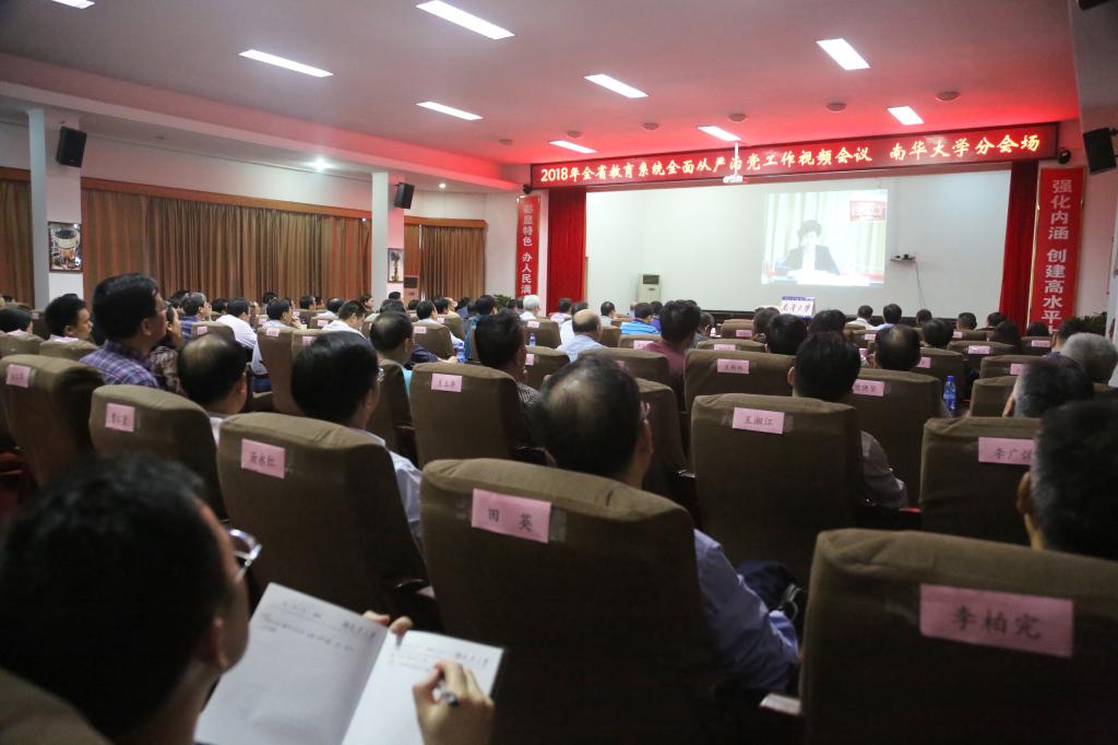 4月4日,2018年全省教育系统全面从严治党工作视频会议召开,在校校领导以及各二级单位、职能部门党政主要负责人和纪检监察处同志在西苑办公楼视频会议室分会场参加了会议。