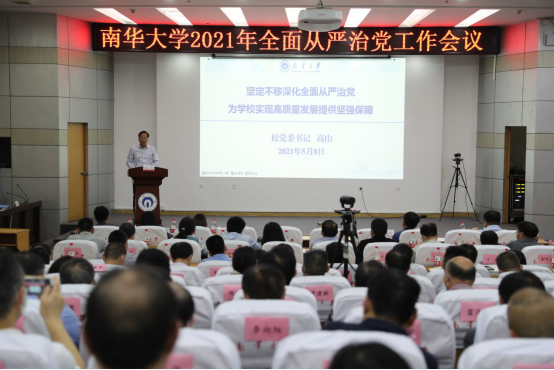 5月8日上午,我校在红湘校区图书馆学术报告厅召开2021年全面从严治党工作会议,深入学习贯彻习近平总书记在十九届中纪委五次全会上的重要讲话以及省十一届纪委六次全会精神,全面贯彻落实全省教育系统全面从严治党工作视频会议暨警示教育大会精神,总结学校2020年全面从严治党工作、部署安排2021年重点任务。校党委书记高山在会上强调,要以高度的政治责任感,坚决学习贯彻习近平总书记的重要讲话精神,坚决贯彻好省委决策部署,以永远在路上的定力和韧劲,坚定不移、一刻不停深化学校全面从严治党工作。会议由校党委委员、副校长雷小勇主持。