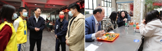 随后,学校新一届党委班子和纪委班子成员分成两组,到笃行园学生食堂调研,与学生共进午餐,当面听取学生的意见和建议。