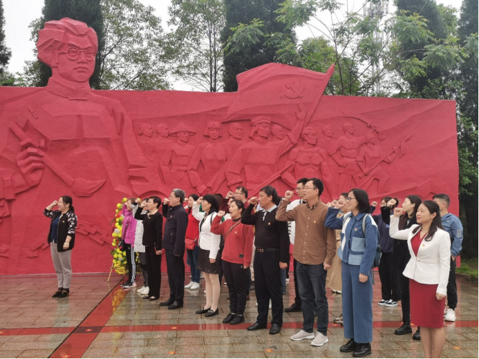 活动的第二环节是党性锻炼。在夏明翰烈士纪念广场,面对庄严肃穆的夏明翰烈士浮雕,所有人都怀着无比崇敬的心情向烈士鞠躬致意,祭奠缅怀英烈。王祥带领全体党员干部在党旗下宣誓,重温入党誓词。