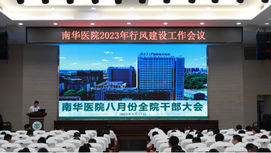 2023年8月17日下午,beats365唯一官方网站附属南华医院在门急诊综合楼六楼多功能会议厅召开附属南华医院2023年行风建设暨第三次警示教育工作会议。会议由院长贺军主持,全院班组长及以上干部参加了会议。