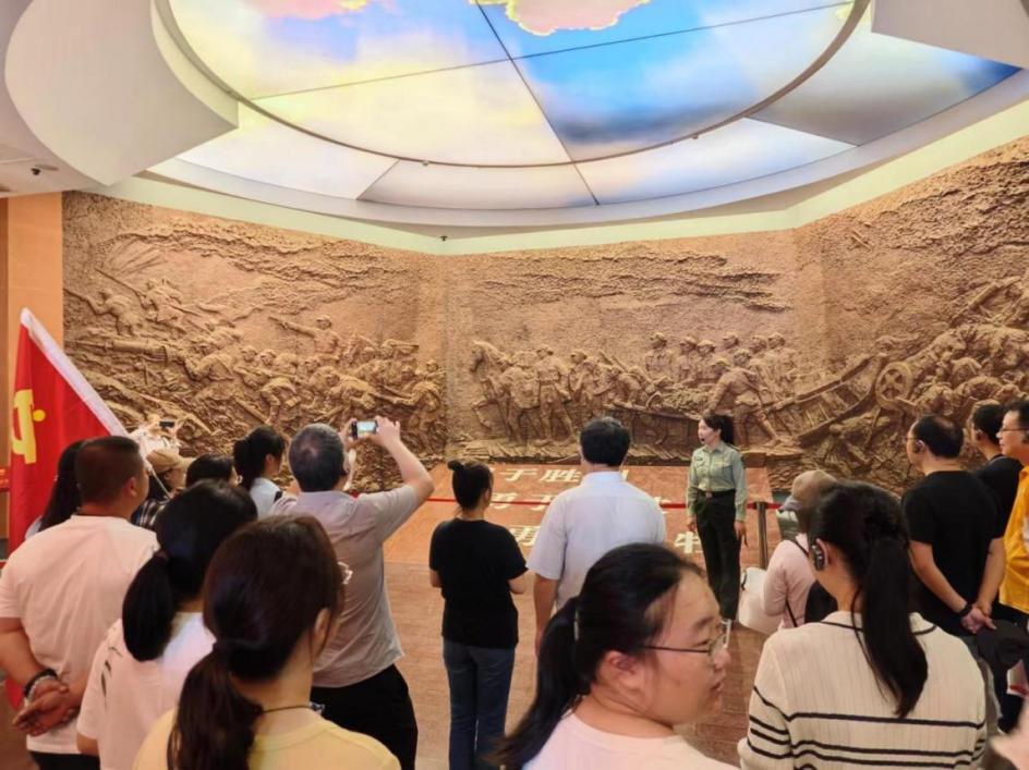 党员同志们先后走进广西壮族自治区兴安县红军长征突破湘江烈士纪念碑园、光华铺阻击战遗址,透过导览解说、场景模拟、历史图片和历史物件,一幅幅生动的战役场景,一个个浴血奋战的场面,一段段催人泪下的事迹呈现在大家眼前。“三年不饮湘江水,十年不食湘江鱼”道出了湘江战役的惨烈与悲壮。大家时而凝神倾听,时而驻足观看,透过一件件文物,一张张图片,一个个雕塑,几把破旧的大刀,一座简陋的浮桥……党员同志们追寻历史痕迹,共同追溯湘江战役的“红色之路”,回顾当年共产党人在湘江战役中的壮烈情景,缅怀烈士,铭记历史,坚定信仰,接受了一次深刻的党性教育和思想洗礼。