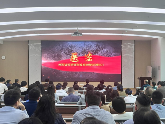 会上,全体与会人员观看了湖南省卫健委党组会同省纪委监委驻委纪检监察组拍摄的警示教育片《医鉴》。